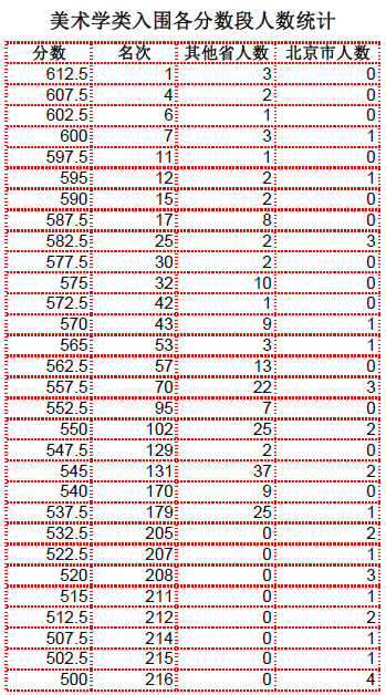 二、2018年清华大学美术学院本科招生专业考试入围分数段统计