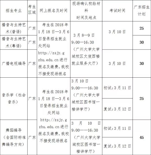 更多细节详见:2018年广州大学艺术类专业校考招生简章