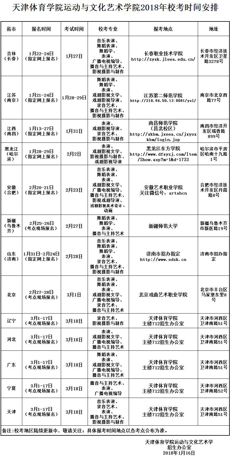 备注:我校2018年各地区校考时间地点安排以各考点公布为准。
