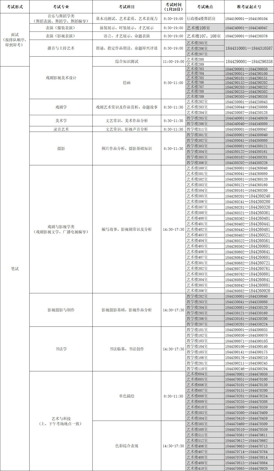 7.戏剧学、美术学、录音艺术、摄影、戏剧与影视学类(戏剧影视文学、广播电视编导)、影视摄影与制作、书法学专业考试时间为三个小时,两个考试科目连续进行。