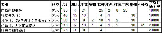 我校艺术类专业为:广播电视编导、视觉传达设计、环境设计、产品设计、服装与服饰设计。
