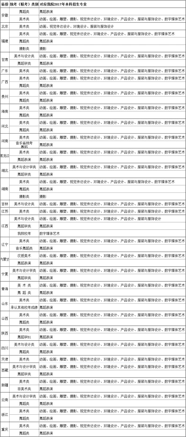 2017年分省艺术类统考(联考)涵盖我院的专业