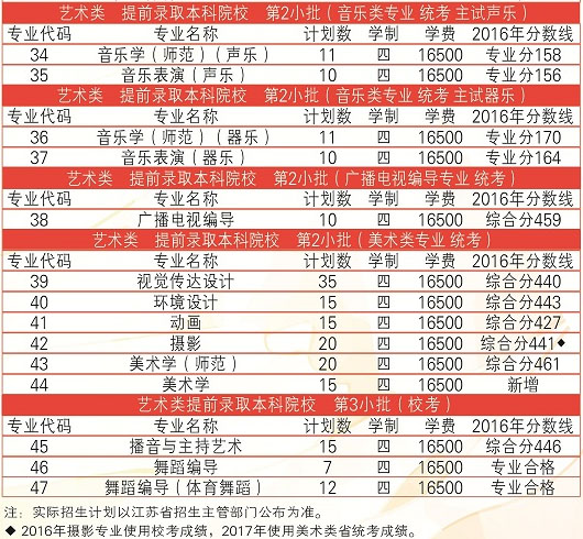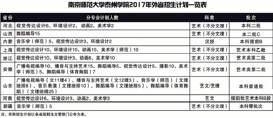 南京师范大学泰州学院2017年江苏省艺术类本科招生计划