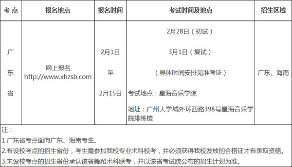 4、广东省考生在文化分达到省划定第二批本科录取分数线的前提下,按我校单独组织的舞蹈专业术科校考成绩从高到低择优录取;术科校考成绩相同者,文化分高者优先录取;专业术科校考未取得本校合格证者,不予录取。