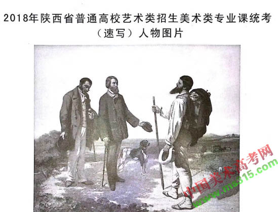 2018年陕西美术联考素描科目考试为人物头像照片,速写为大师油画临摹(三人动态)。
