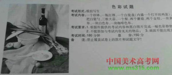 2018江西美术联考色彩考题 艺考 • 2023-06-19 15:27:56 • 专栏 2018年江西美术联考色彩考试12月17日下午14:30-17:30举行,考试时长3小时,满分150分,考试内容由往年的“静物(默写)”调整为“静物(含静物组合,默写或模拟写生)”。 具体考试题目如下图: 本文由用户:艺考 投稿分享,如有侵权请联系我们(点击这里联系)处理,若转载,请注明出处:http://xueli.yktime.cn/42996.html 赞 (0) 艺考 0 生成海报 相关推荐 2018山东交通学院美术类校考合格分数线 山东交通学院2018年甘肃美术校考计划招生30人,合格120人,最高分189.67分,合格线159.00分 … 专栏 2023-06-19 00 山东工艺美术学院什么专业好,山东省最好的美术大学 山东工艺美术学院现有视觉传达设计学院、建筑与景观设计学院、工业设计学院、造型艺术学院、服装学院、现代手工艺术学院、数字艺术与传媒学院、人文艺术… 专栏 2023-06-19 00 中国矿业大学2018年音乐学本科专业招生计划 专业 河北 江苏 安徽 湖南 音乐学(声乐) 4 3 3 3 音乐学(器乐) 3 4 合计 7 7 3 3 专栏 2023-06-19 00 2022年广东专升本官方指定参考教材出炉! 2021年广东普通专升本改革以后,考试科目变成了考四门,分别是:公共课(政治+英语)+专业基础课+专业综合课(“2+1+1”模式),专业综合课分为统考的和院校自主命题。 各… 专栏 2023-06-19 00 2022年陕西航空技师学院有哪些专业 为您整理了2022年陕西航空技师学院有16个热门专业,专业数据来源网络供参考,专业介绍、收费标准请陕西航空技师学院官网公布为准。 陕西航空技师学院开设的专业: 1、城市轨道交通运输… 专栏 2023-06-19 00 2022年射洪旅游中等职业技术学校有哪些专业 为您整理了2022年射洪旅游中等职业技术学校有5个热门专业,专业数据来源网络供参考,专业介绍、收费标准请射洪旅游中等职业技术学校官网公布为准。 射洪旅游中等职业技术学校开设的专业:… 专栏 2023-06-19 00 音乐艺考生,现在教你怎样避免艺考丢分 现在艺考生数量逐年增加,作为音乐生,如何能在艺考中取得好成绩?是每个音乐艺考生都在意也不容易把握的问题。下面,小编整理了就音乐艺考生参加艺考中,怎样避免丢分减少丢分的一些细节问题。… 专栏 2023-06-21 00 2022年闽东卫生学校有哪些专业 为您整理了2022年闽东卫生学校有5个热门专业,专业数据来源网络供参考,专业介绍、收费标准请闽东卫生学校官网公布为准。 闽东卫生学校开设的专业: 1、助产 2、护理 3、药剂 4、… 专栏 2023-06-19 00 发表回复 您的邮箱地址不会被公开。 必填项已用 * 标注*昵称: *邮箱: 网址: 记住昵称、邮箱和网址,下次评论免输入 提交