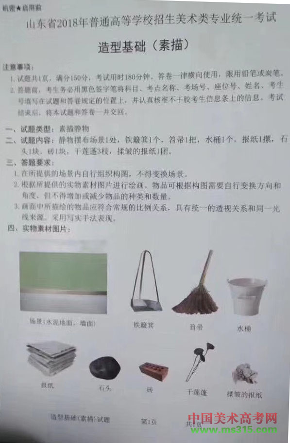 2018山东美术联考素描考题 艺考 • 2023-06-19 15:28:00 • 专栏 2018山东美术联考素描静物,横构图,半默写。考试时长180分钟,满分150分。 本文由用户:艺考 投稿分享,如有侵权请联系我们(点击这里联系)处理,若转载,请注明出处:http://xueli.yktime.cn/43051.html 赞 (0) 艺考 0 生成海报 相关推荐 青海民族大学2018年艺术类本科专业招生简章 青海民族大学创建于1949年12月,是青藏高原建立最早的高校,是新中国建校最早的民族院校之一,是全国首批获得硕士学位授予权单位。 2009年,与北京工业大学正式签订对口交流协议… 专栏 2023-06-19 00 2017年广西师范大学漓江学院艺术类本科专业录取分数线 广西师范大学漓江学院2017年广西艺术类本科专业录取分数线 专业名称 科类 录取最高分 录取最低分 本批次录取线 音乐学 艺术(文) 文化426专业243 文化256专业215 文… 专栏 2023-06-19 00 美术学类包括哪些专业,美术学类专业与美术类专业有什么区别 以前,美术类专业设置非常混乱,经过2012年教育部的专业改革,全国高校统一了专业名称。其中,美术学类包含了:美术学、绘画、雕塑、摄影、中国画(… 专栏 2023-06-19 00 2021年贵州专升本茶学招生院校 2021年贵州专升本茶学专业招生院校有黔南民族师范学院。 2021年贵州专升本茶学招生院校 招生院校 专业名称 学制 招生计划总数 文科 理科 对口专业 黔南民族师范学院 茶学… 专栏 2023-06-19 00 重庆工程学院2017年重庆市美术类专业招生计划 重庆工程学院2017年在重庆市艺术类本科专业招生计划 数字媒体艺术:360人 动画:100人 环境设计:225人 重庆工程学院2017年在重庆市艺术类专科专业招生计划 视觉… 专栏 2023-06-19 00 2022年苏州市太湖旅游中等专业学校有哪些专业 为您整理了2022年苏州市太湖旅游中等专业学校有20个热门专业,专业数据来源网络供参考,专业介绍、收费标准请苏州市太湖旅游中等专业学校官网公布为准。 苏州市太湖旅游中等专业学校开设… 专栏 2023-06-19 00 2018年郑州大学美术类专业校考合格名单 2018年,我校在安徽、湖南、江西、山西等四省组织了美术类专业校考。根据教育部有关规定、按照校考成绩从高到低的顺序,择优公示合格名单236人,… 专栏 2023-06-19 00 2022年厦门东海职业技术学院高职招考有什么专业(高职招考学费多少) 上一篇 返回 专栏 2023-06-19 00 发表回复 您的邮箱地址不会被公开。 必填项已用 * 标注*昵称: *邮箱: 网址: 记住昵称、邮箱和网址,下次评论免输入 提交