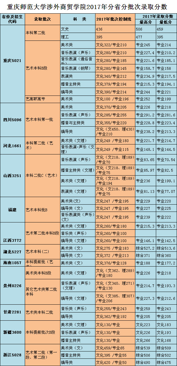 在采用校考成绩的省份,如考生所在省(直辖市、自治区)招办同意,我校也可认可其他学校的校考成绩,进档考生按照文化成绩排序择优录取;