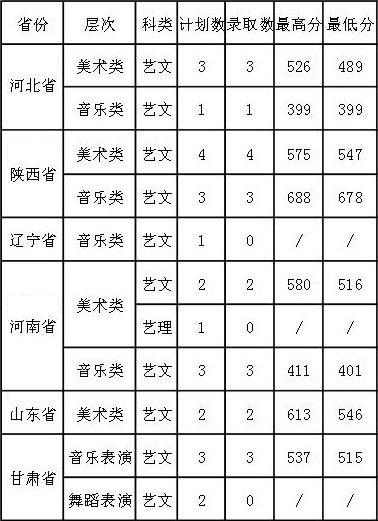2、以各省级招生部门划定的艺术类本科文化课的最低控制分数线为我校文化课成绩的最低录取线。根据考生进档顺序分专业排序,按专业成绩从高分到低分择优录取,各专业文理兼收;专业成绩相同时按文化课成绩排序录取。