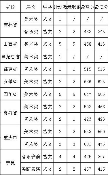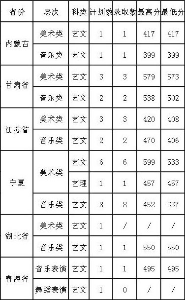 宁夏理工学院2017年艺术类本科专业录取分数线