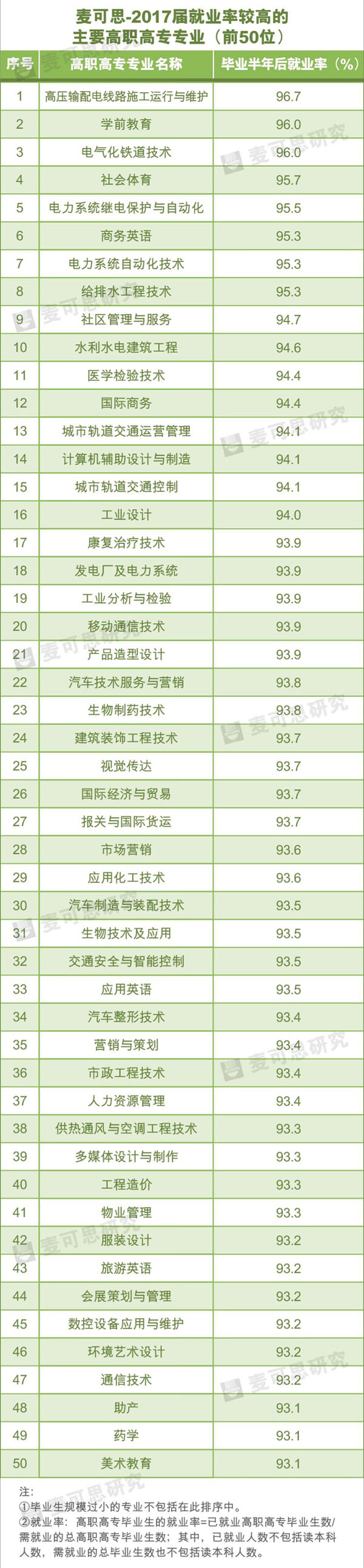 说明:高职高专就业率前50位中,艺术类专业有产品造型设计、视觉传达、多媒体设计与制作、服装设计、环境艺术设计、美术教育,全部为美术类。