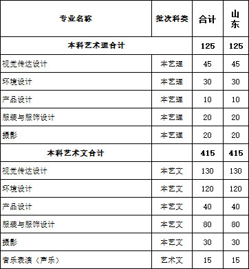 齐鲁工业大学2018年山东省艺术类本科招生计划