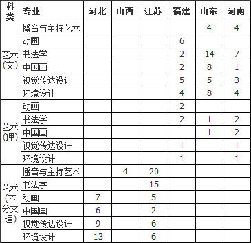 备注:陕西书法学、山东书法学、江苏书法学、江苏播音与主持艺术单独组织校考。