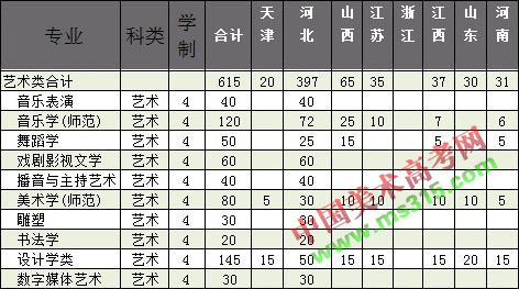 报考我校音乐类、舞蹈类、美术类专业的考生必须参加生源所在省统一组织的专业测试,录取原则是:考生文化课成绩达到生源所在省文化录取控制线以上,且专业成绩合格,根据考生志愿按统考专业成绩从高到低录取,专业成绩相同按文化成绩较高者录取,文化成绩相同者按照语数外顺序分数较高者录取。