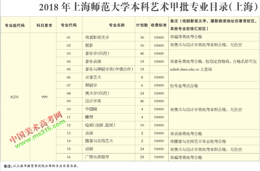 2018年上海师范大学广播电视编导、戏剧影视文学专业招生简章