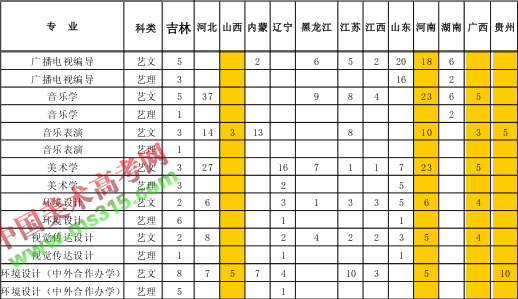 吉林省的音乐类、广播电视编导专业考生,必须参加我校艺术类专业考试且成绩合格,否则不予录取,吉林省的美术类考生采用省统考(联考)合格成绩,其他省份的艺术类专业考生,我校承认相应省份对应专业的统考(联考)合格成绩。