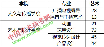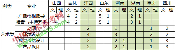 广播电视编导、播音与主持艺术招生省份含湖南、山西、吉林、山东、广东,其中吉林、山东(播音)、广东组织校考,其余省份(专业)使用统考成绩进行录取;美术类专业使用美术统考成绩进行录取。
