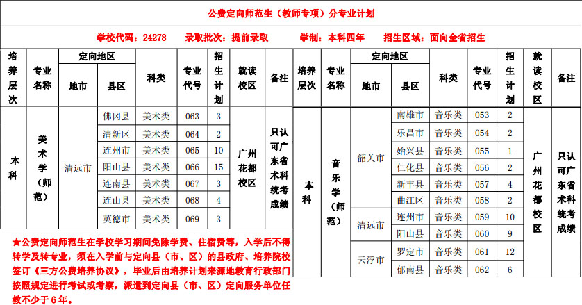 广东第二师范学院2018年广东省公费定向师范生(教师专项)招生计划