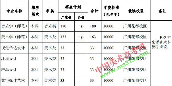 广东第二师范学院2018年艺术类本科专业招生总计划
