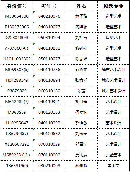 中央美术学院2018年本科华侨港澳台联招拟录取考生名单:
