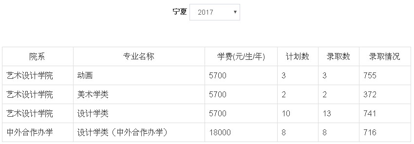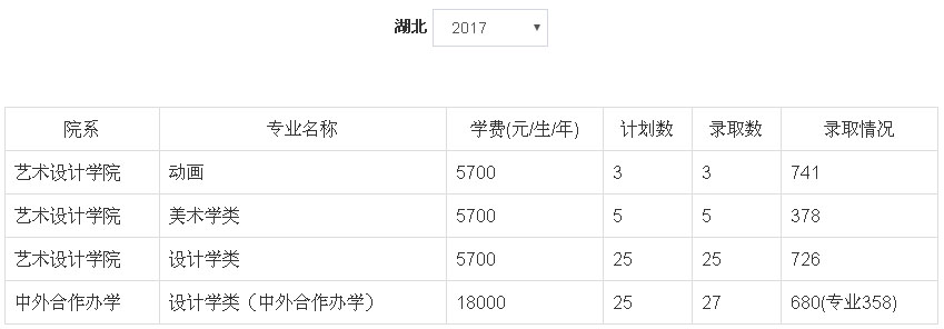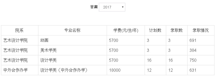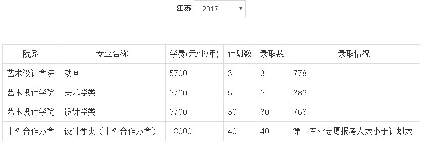 1、2018年我校艺术类本科专业招生采用校考成绩作为专业成绩的省(区)为:河北省、山西省、黑龙江省、江苏省、江西省、湖北省、贵州省、甘肃省、宁夏回族自治区。招生专业有:动画(学费5700元/生/年)、设计学类(学费5700元/生/年)、美术学类(学费5700元/生/年)、设计学类(中外合作办学,学费18000元/生/年)。