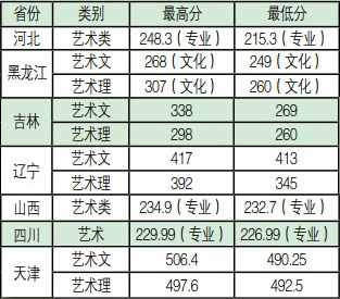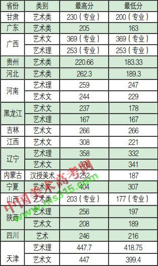 美术类考生文化课成绩和专业考试成绩均需达到生源所在省相应科类、批次录取控制分数线,对进档考生按照专业成绩从高分到低分排序录取,专业成绩相同时按文化成绩排序,择优录取,若文化成绩相同,依次按语、数、外单科成绩排序,成绩高者优先录取,其它要求按生源省相关规定执行。
