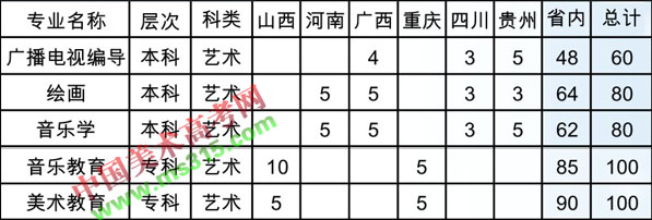 第十八条 艺术、体育类专业录取办法:凡报考我校绘画、音乐学、广播电视编导、美术教育、视觉传播设计与制作、音乐教育、体育教育、社会体育等专业的考生,在文化、专业成绩均达到生源省份划定的控制分数线后,均按照生源省份公布的投档成绩计算办法,以考生投档成绩从高分到低分排序录取。