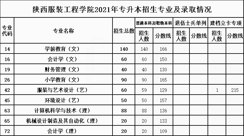 2021年陕西服装工程学院专升本录取工作已经结束, 2022年专升本也正式拉开了序幕,为了帮助考生更好的了解陕西服装工程学院院专升本录取情况,库课小编给大家分享一下2021年陕西服装工程学院专升本招生专业及最低录取分数线,仅供考生参考。