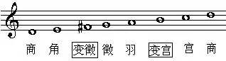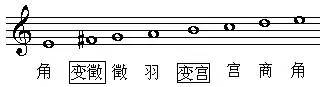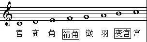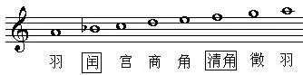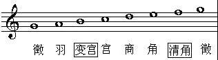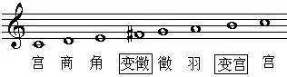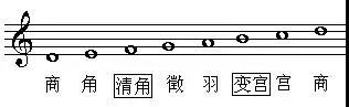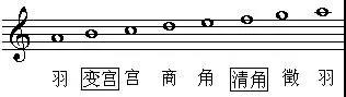 雅乐调式是在五声音阶的基础上增加变徵和变宫而成的。又称正声音阶或古音阶。其音阶的构成是:宫、商、角、变徵、徵、羽、变宫。由于五个正音都可以作为主音,在雅乐音阶的基础上就能够产生出五个清乐调式: