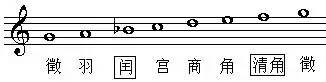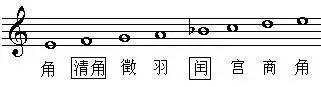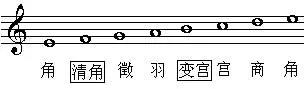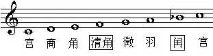 燕乐调式是在五声音阶的基础上增加清角和闰而成的。又称清商音阶或俗乐音阶。其音阶的构成是:宫、商、角、清角、徵、羽、闰、宫。由于五个正音都可以作为主音,在燕乐音阶的基础上就能够产生出五个清乐调式: