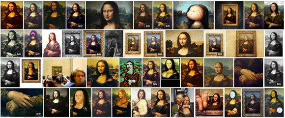 《蒙娜丽莎》也从之前少数精英戏谑的对象,变成了普通大众的消遣品,网络上各式各样的、各种版本的《蒙娜丽莎》衍生作品几近泛滥。