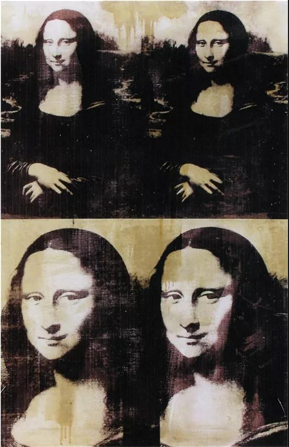 他重复“蒙娜丽莎”的最初作品可以追溯到1963年——《30比1好》。这里展示的是四幅“蒙娜丽莎”的一个重复。