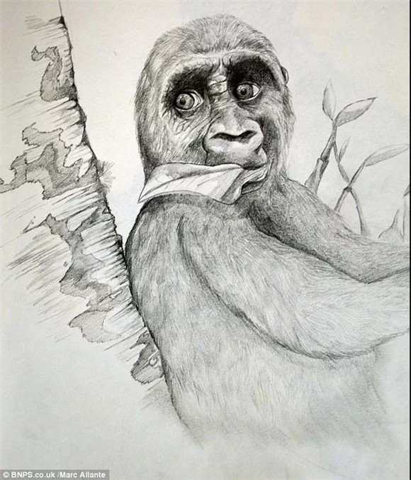 细节:16岁时创作的这张画中可以看到allante创作野生动物素描的天赋
