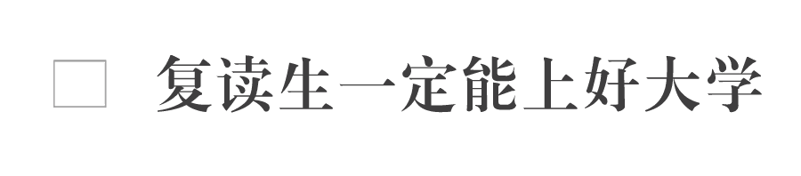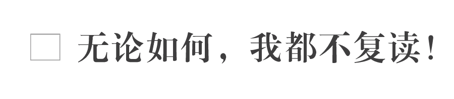 这是应届生很容易产生的想法。要知道,谁都不愿意复读,复读要不是被父母逼着的,就是想更上一层楼实现抱负的选择。在各省每年的高考考生中,四分之一都是复读生,而顺利被大学录取的考生中,复读生所占的比例更大。因此不是我们愿不愿意复读的问题,而是我们要根据当时情况而做出复不复读这个决定的问题。