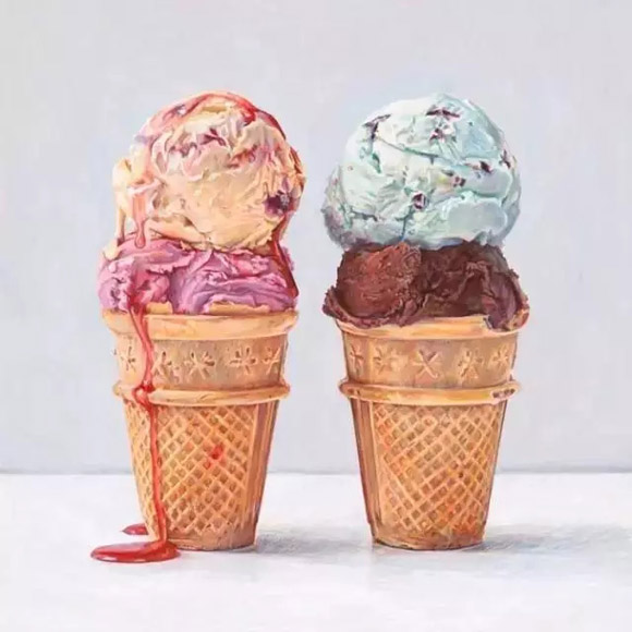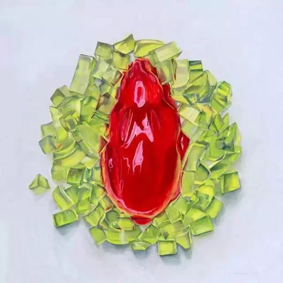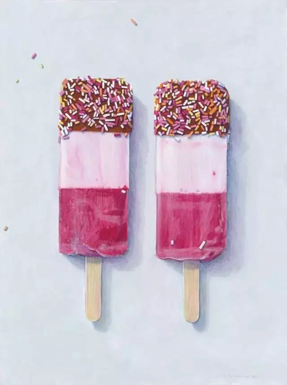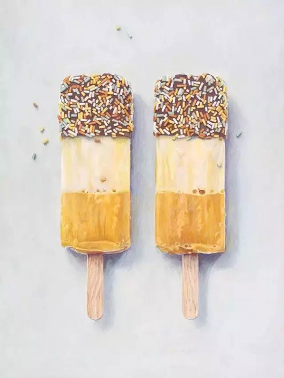 喜爱美食,又热爱画画!一名新西兰女孩 jo?l penkman 尝试将两者结合,创造出了一系列美食静物作品。不仅对食物观察入微,还画的栩栩如生!可以说是很合格的吃货了~