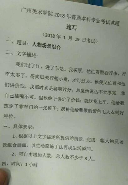 广州美术学院2018年美术校考考题(重庆考点) 艺考 • 2023-06-21 09:41:36 • 专栏 素描考题: 色彩考题: 速写考题: 本文由用户:艺考 投稿分享,如有侵权请联系我们(点击这里联系)处理,若转载,请注明出处:http://xueli.yktime.cn/44419.html 考试真题 赞 (0) 艺考 0 生成海报 相关推荐 江汉大学2015年艺术类专业录取查询 江汉大学2015年艺术类专业录取查询网址:http://zjc.jhun.edu.cn/zs/cxxt.asp?l=6 如长时间未出… 专栏 2023-06-19 00 编导艺考好过吗?需要注意什么 编导是众多艺考专业中比较简单,但对文化成绩要求略高的专业,考察的是学生对艺术的理解、文化修养以及考生的气质、内涵。愿思考、爱积累、善动笔、能表达的学生基本都具备编导专业的潜质,在学… 专栏 2023-06-21 00 2021年湖南财政经济学院专升本经济法考试大纲 2021年湖南财政经济学院专升本招生专业法学的考试科目为大学英语、法理学和经济法,库课网校带大家看一下专升本法学专业基础课,2021年湖南财政经济学院专升本经济法考试大纲的内容… 专栏 2023-06-19 00 文物保护与修复专业就业前景? 你好我是今年的考生想报考考古类专业但是不知道哪个方向的就业比较好. 因为看到有文物修复与保护专业想了解下在国内学习这个专业以后就业前景怎. 从事文物鉴定与修复专业教学研究;2、进入… 专栏 2023-06-19 00 福州大学2018年艺术类专业面向港澳台侨招生简章 一、学校简介 福州大学是国家双一流建设高校、211工程重点建设大学、福建省人民政府与国家教育部共建高校,创建于1958年,现已发展成为一所以工为… 专栏 2023-06-19 00 2022年浙江长征职业技术学院提前招生考什么(考试大纲) 考试形式及计分方法 第十八条 综合成绩计分。 考生的综合成绩由高中学考成绩(满分300分)或浙江省职业技能考试成绩(满分300分)+综合素质测评成绩(满分300分)两部分… 专栏 2023-06-19 00 河南省2021年各地市县招办联系方式 对于专升本同学而言,报考所在地就是你的专科学校所在地,如考生有需要咨询的问题,可先电话咨询现居住地招生办,下面库课李老师给考生整理了河南省2021年各地市县招办联系方式,请考生… 专栏 2023-06-19 00 2018广东艺术校考顺德区大良实验中学考点时间安排表 2018年全国部分高等院校艺术专业校考考生须知美术考生须知 1、考生应在每科开考前30分钟,凭准考证、身份证进入考场,对号入座。入座后考生应将准考证、身份证夹在画板的左上角,以… 专栏 2023-06-19 00 发表回复 您的邮箱地址不会被公开。 必填项已用 * 标注*昵称: *邮箱: 网址: 记住昵称、邮箱和网址,下次评论免输入 提交