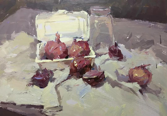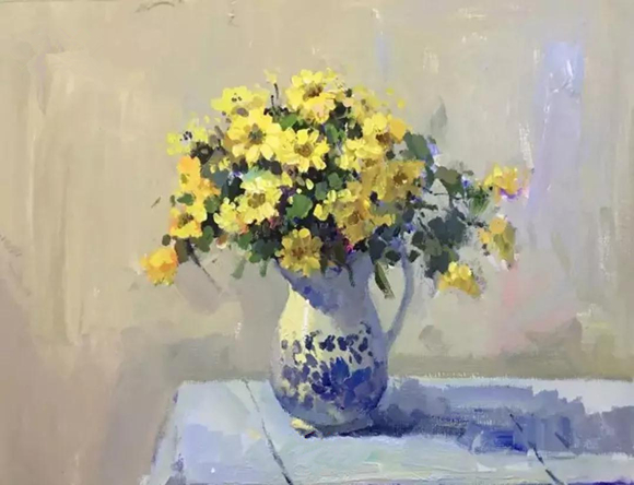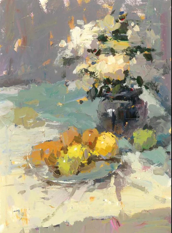 ③先薄后厚:色彩的颜料要一遍一遍加,不要一开始就画得很厚,后期调整的时候就不好画,就算是老手也不好修改,同时厚薄的变化有利于空间感的表达;先大后小:一般来说我们会先画大的地方,包括背景、衬布、主体物,画完之后有利于确定画面的色彩关系,通过比较再去画小的静物会更好。