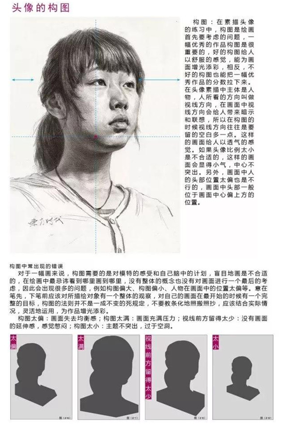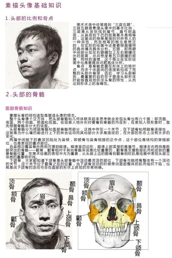 一般仰视、正面头像顶面缩小,面部及五官缩短,下颌突出,体积放大,这就是上小下大的仰视效果。