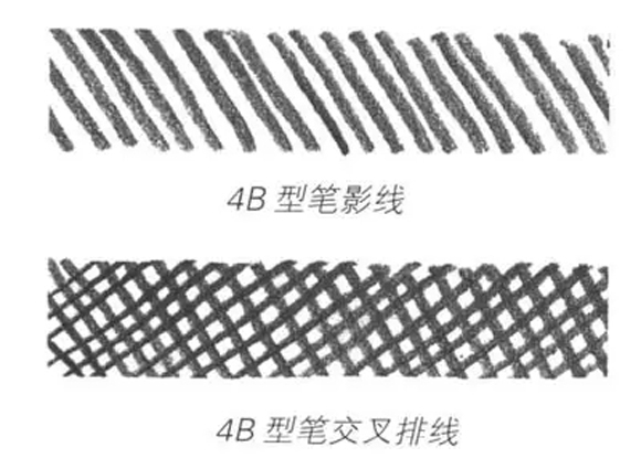 所谓影线就是平行用笔,有直线也有曲线;所谓交叉排线就是将两层或者多层影线以某一角度重叠。影线和交叉排线用以产生块面、质感、阴影、深度、圆润度等方面的效果。线条可粗可细,也可根据不同需要进行组合。