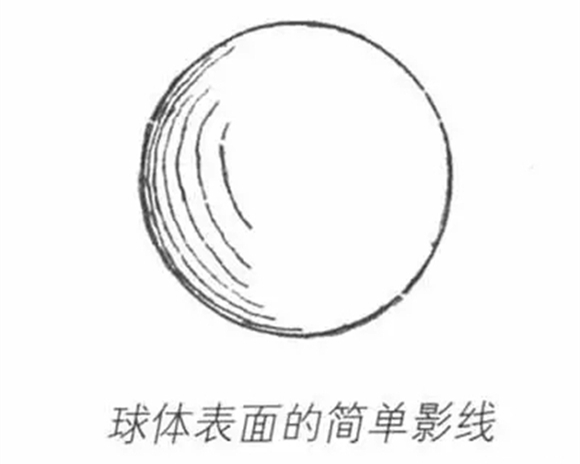 要产生圆润的效果,可使用影线,并且越靠近球体边缘,线条间距越小。如果物体是圆筒状的,那么用直线条比较好;若是球体,那么曲线条比较好。如果是缩进的平面,如墙面或者盒面,那么同样应当记住线条间距的变化。