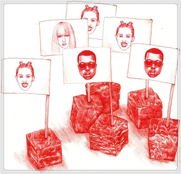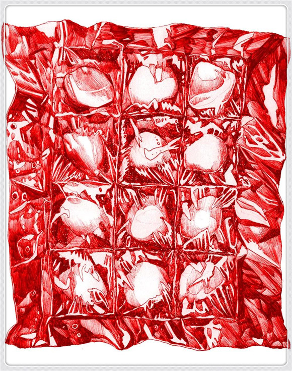 荷兰设计师/插画师 silvia celiberti 有一系列红蓝圆珠笔的绘画作品。她用这两种颜色和有“局限性”的笔触,却创作出了很多富有想象力的作品。细腻又叛逆,画风写实却又充满幻想。