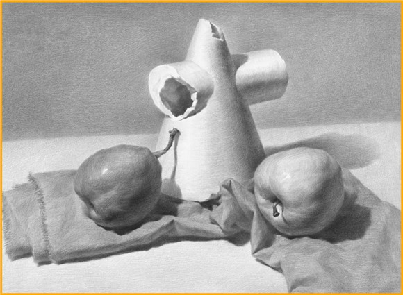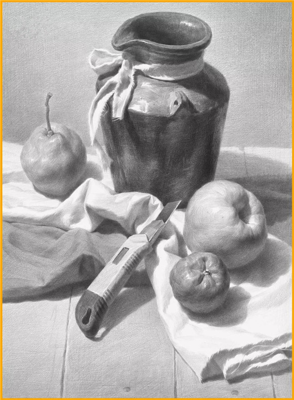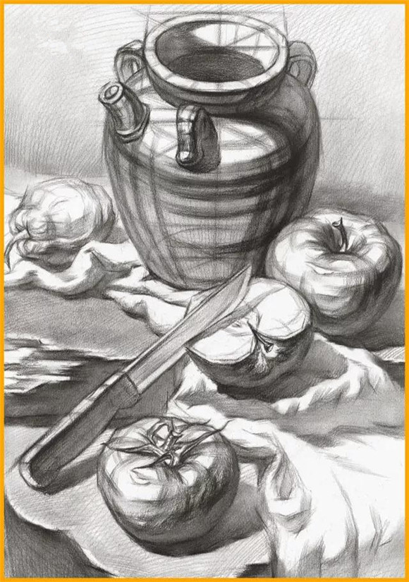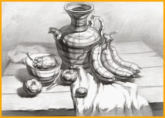 素描静物深入要从结构、质感等方面入手,在作画过程中也要考虑以下因素。