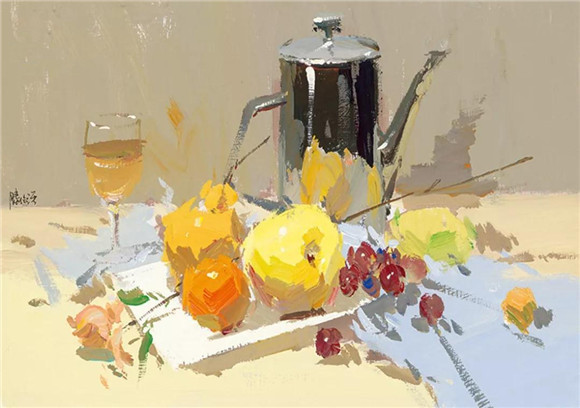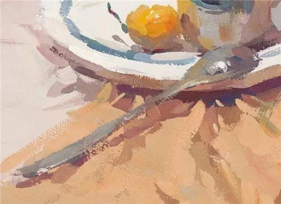 ⑥要注意周围环境色对不锈钢的影响,环境色不能处理得太灰,其纯度应该较高,水分可适当少些,这样有利于色性的把握,不至于画“脏”。