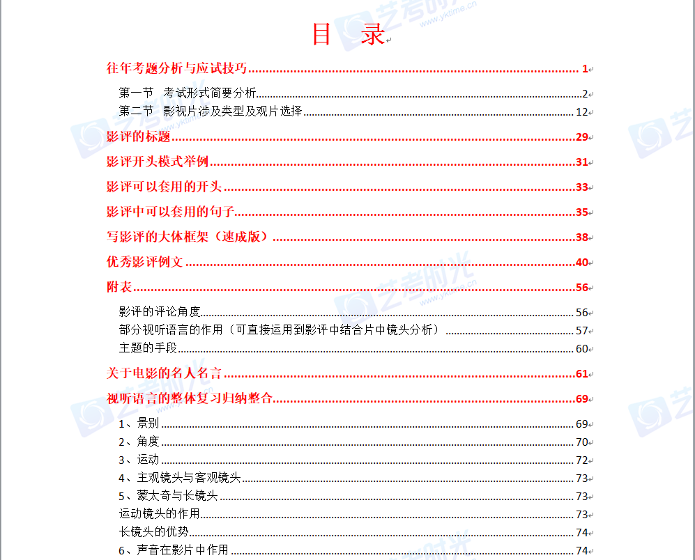 《编导艺考影视作品分析与评论》【2019版】电子版书籍,由艺考时光网(www.yktime.cn)精心编撰而成,本书将会教考生掌握必备的写影评技巧、整理出最为齐全的视听语言复习知识点、系统介绍中国导演、编导专业写影评的要点与建议以及50篇影评范文供参考学习等,帮助2019年编导艺考生在考试中逆袭。