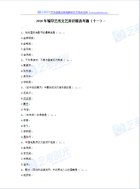 2018年编导艺考文艺常识精选考题(十一)