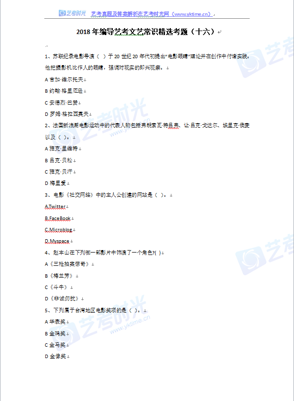 2018年编导艺考文艺常识精选考题(二十)