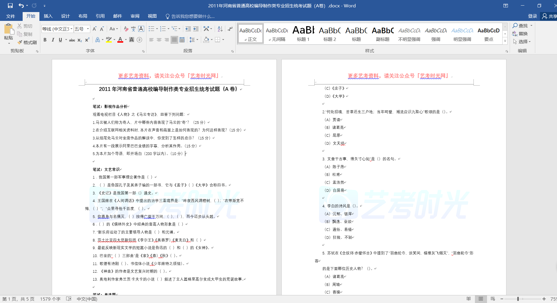 笔试:文艺常识