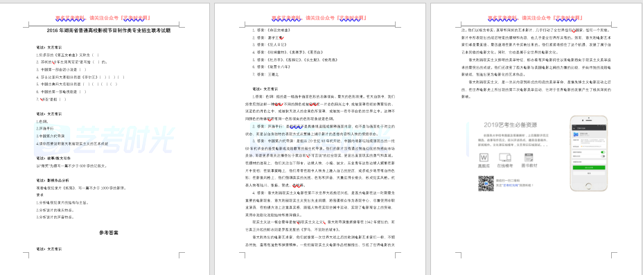 2016年湖南省普通高校影视节目制作类专业招生联考试题