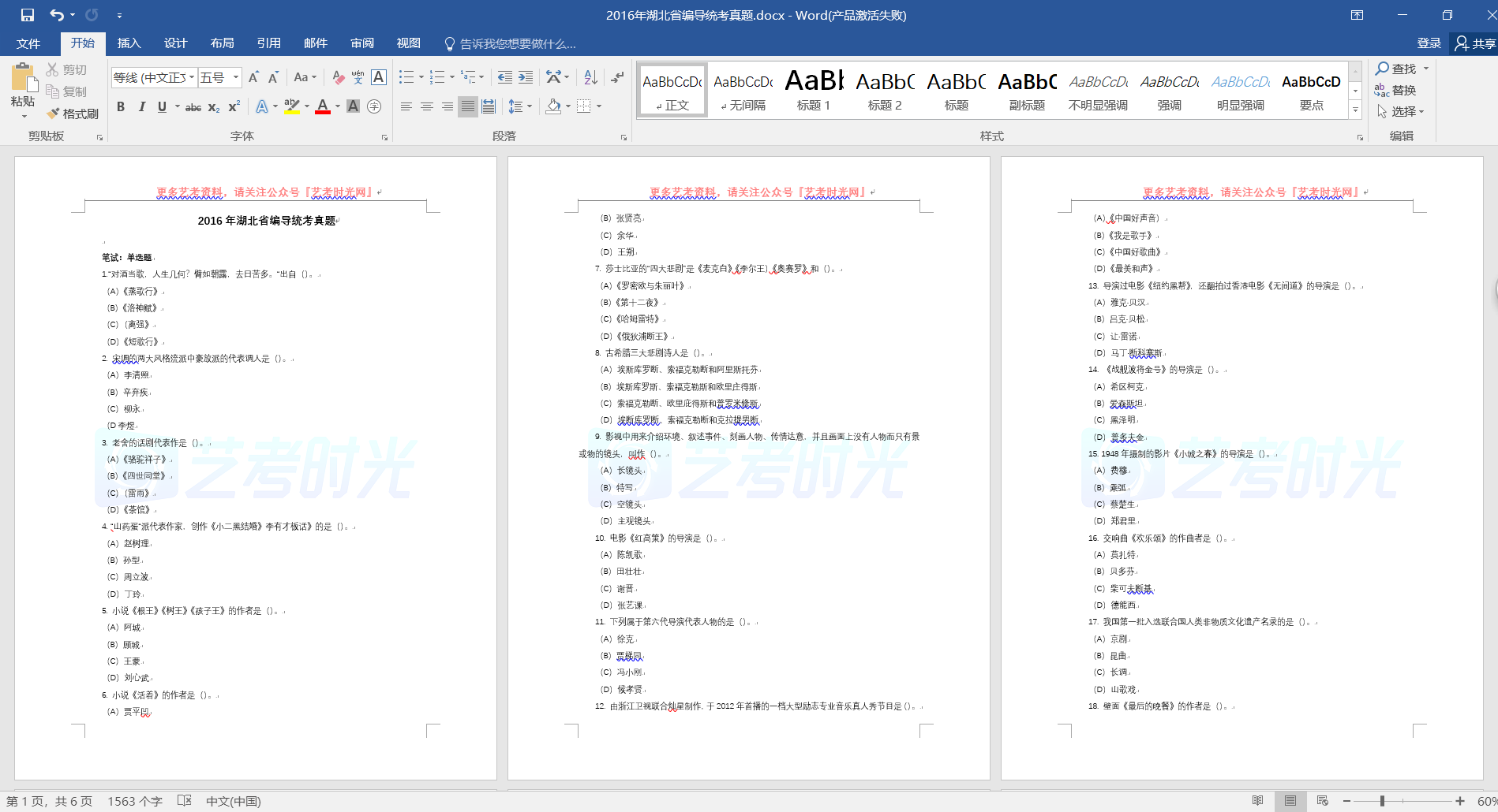 2016年湖北省编导统考真题