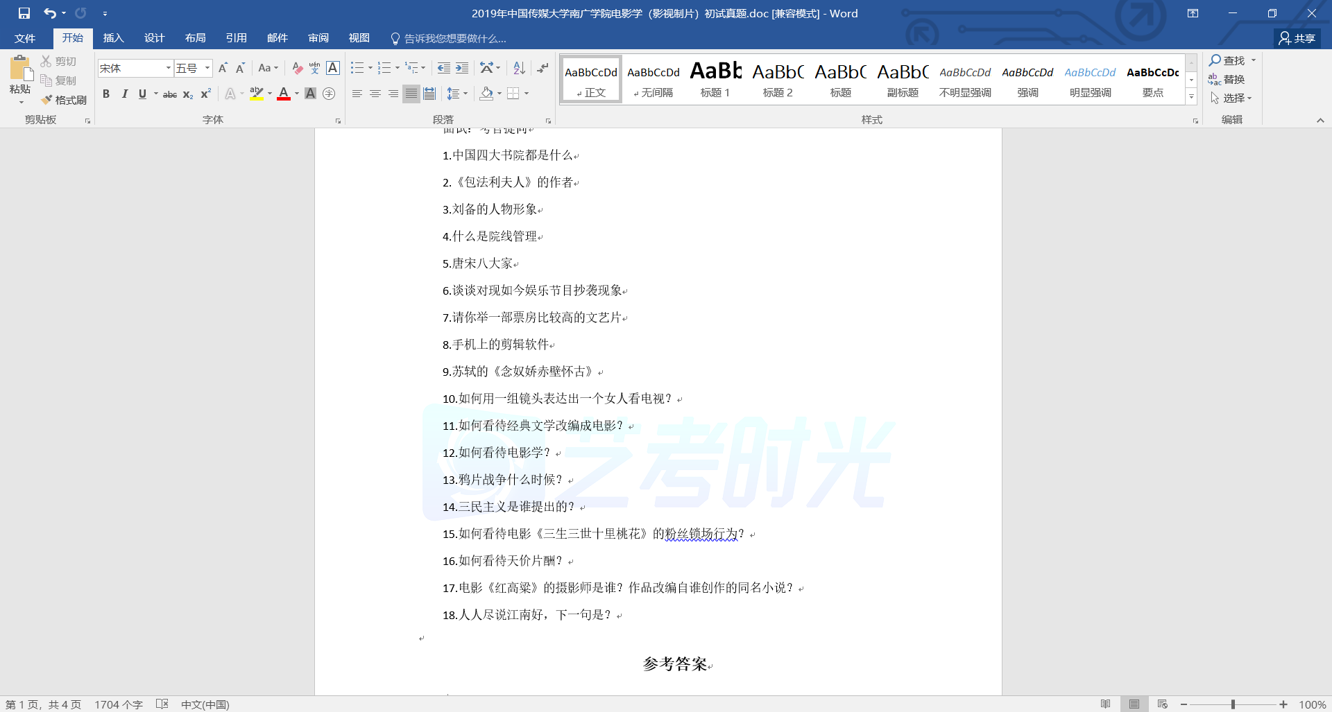 2019年中国传媒大学南广学院电影学(影视制片)初试真题